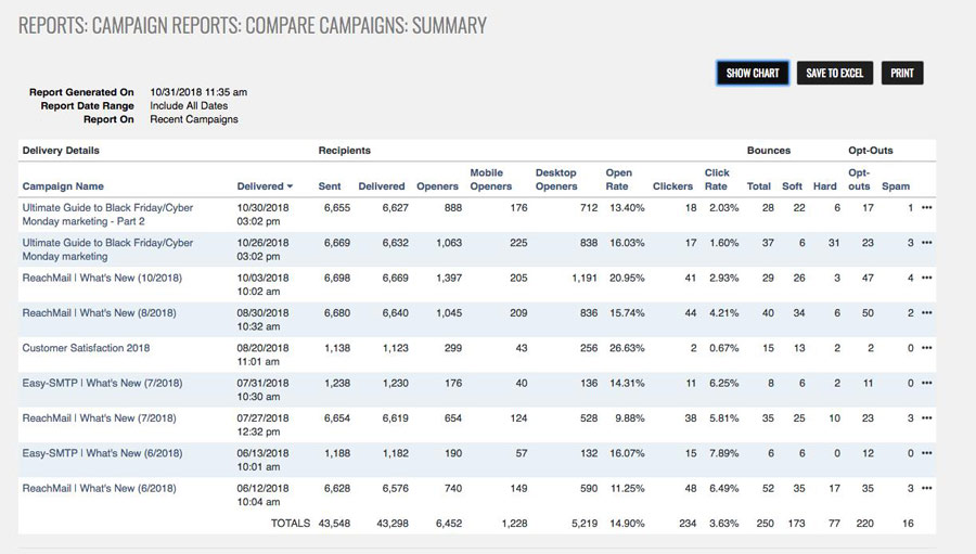 ReachMail is a simple to use self-service email marketing platform, with many features like autoresponders, survey builder, segmentation and automation options. Build from the ground up with promotional marketing in mind.