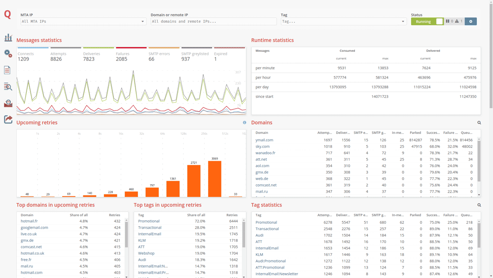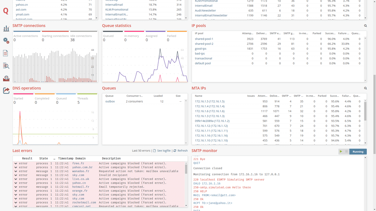 MailerQ is a high-performance on-premise Mail Transfer Agent built for sending and controlling large volumes of email. It is built with a strong focus on performance, ease-of-use, and insight. And as such is considered as an alternative to the conventional MTA tools.