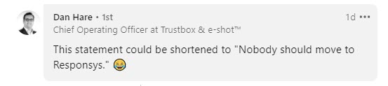 But it’s pretty simple: Nobody should move to Responsys without at minimum looking around first 😮 or shorter, like Dan Hare said:
