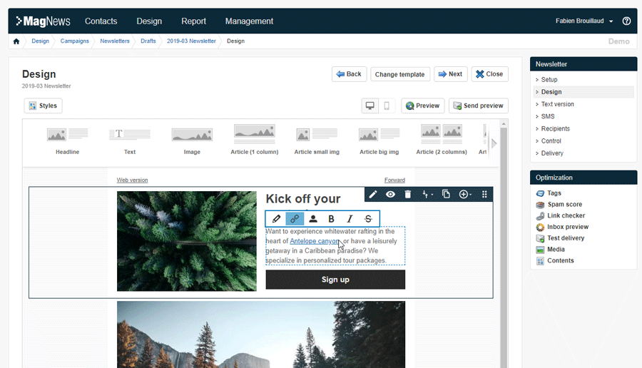 MagNews is a user-friendly, multilingual multichannel marketing & automation platform. It is available in SaaS and On-premise version. MagNews allows marketers to develop and manage acquisition, loyalty and cross-selling programs. It’s tools and features support the creation of advanced and personalized cross-channel communication.