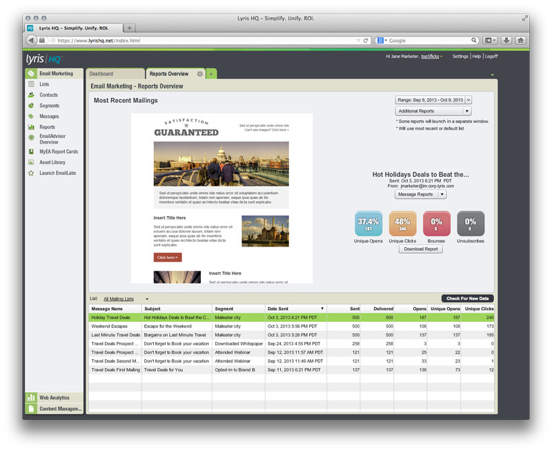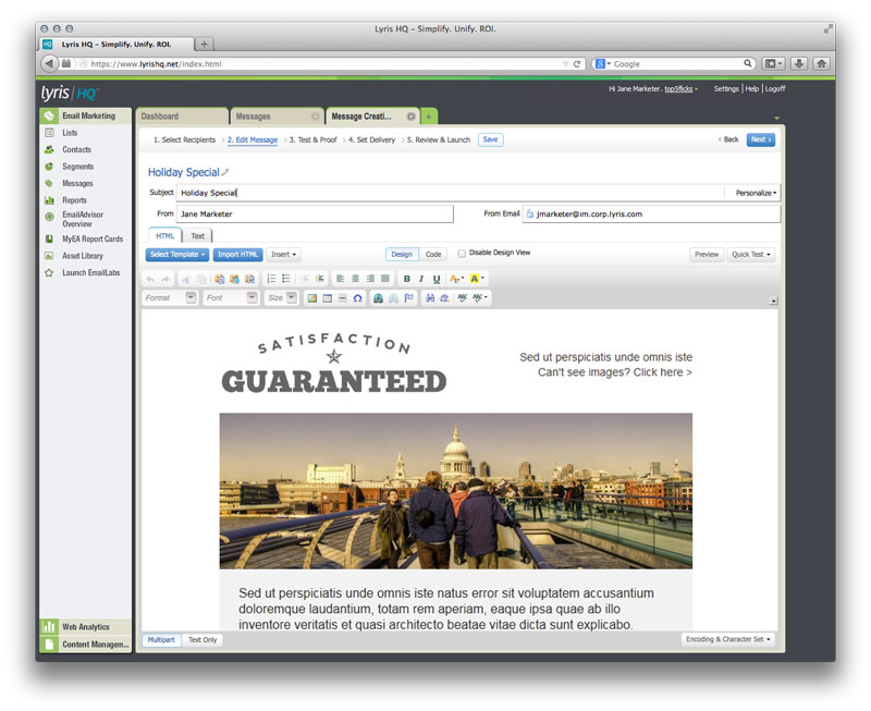 Aurea LM Professional provides marketers with advanced email list marketing capabilities, including: dynamic content, advanced scripting, SSL support, deliverability dashboard and MailStreams segmentation, multi-vendor Web analytics integration, a heat map that shows your most popular links, and click-through, clickstream, refer-a-friend, and forward tracking