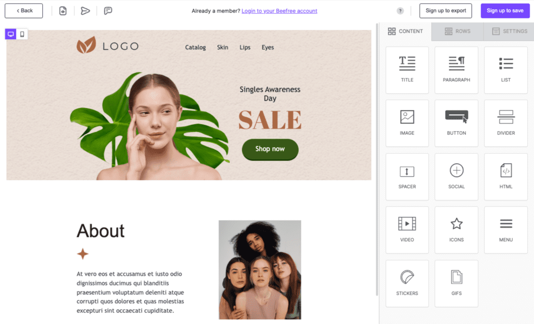 Beefree is a no-code design tool to quickly create content and designs. Beefree’s visual builders are used to design emails, landing pages, one-page sites, and more. They deliver design flexibility with a great user experience, you control design elements with handy features like editing content directly in mobile view.