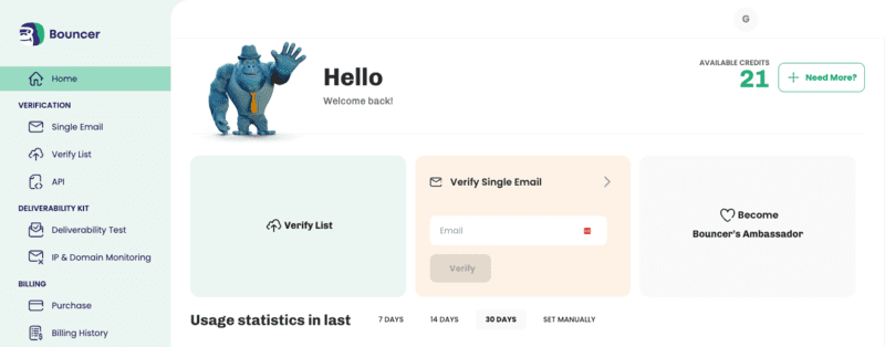 Bouncer is an email verification and validation provider, created to help other organizations to keep their email communication undisturbed by unhealthy email lists.