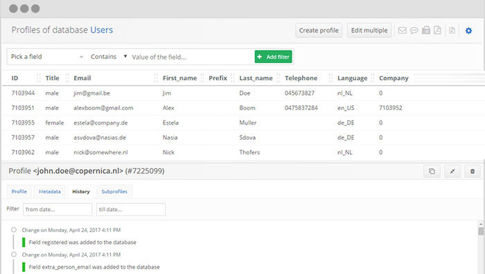 Multi-dimensional databases: Copernica has a flexible database structure that allows you to segment multiple databases. This gives you the opportunity to reach the right customers with the right content.
