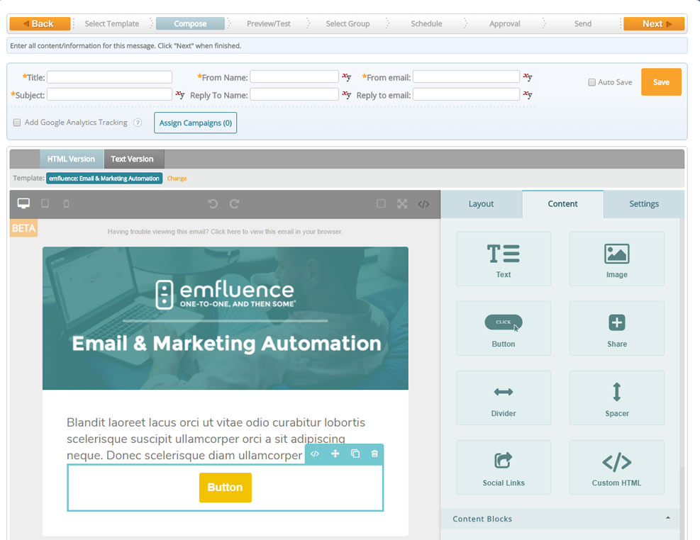 The emfluence Marketing Platform is a marketing tool created by marketers, for marketers. The emfluence Marketing Platform makes it easy to create and deploy email campaigns, because it is intuitive to use.