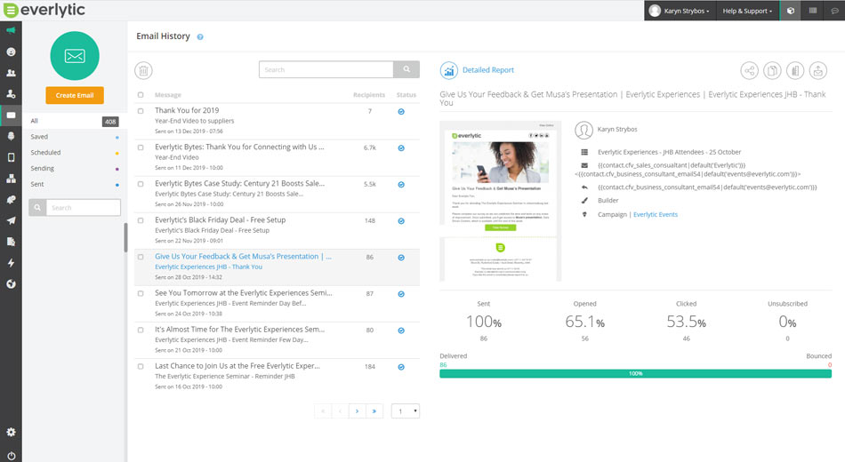 Everlytic gives marketers the power to implement complex email marketing campaigns with ease. A large-scale sending infrastructure ensures fast delivery, while remaining POPI/GDPR compliant.