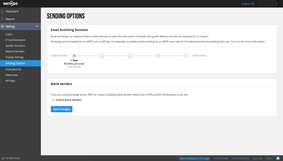 SMTP2GO has been providing outgoing email services to thousands of customers for over 10 years. Customers range from micro-businesses, sending a few hundred emails per month, to medium-sized businesses sending over 30 million emails per month.