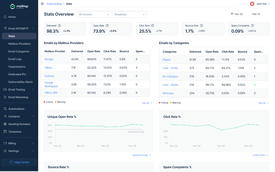Mailtrap is an email delivery platform designed to drive your revenue.