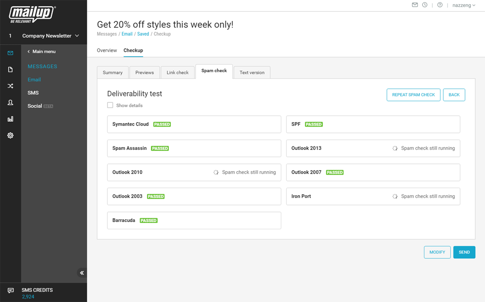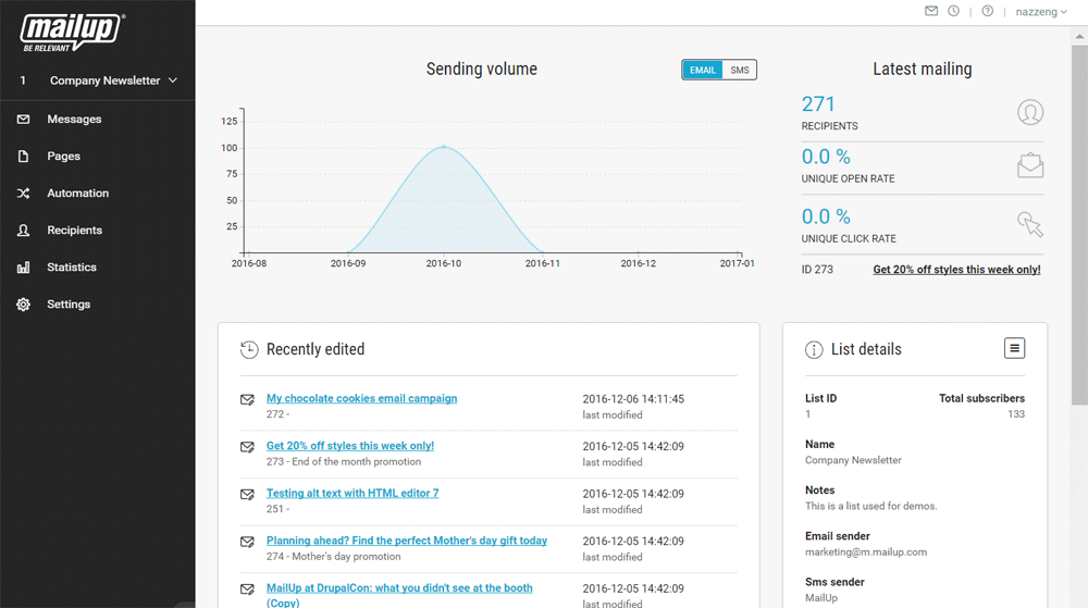 The MailUp email and SMS delivery platform combines email marketing and automation tools with SMTP relay for transactional emails and plugins for e-commerce, CRM, and CMS systems.