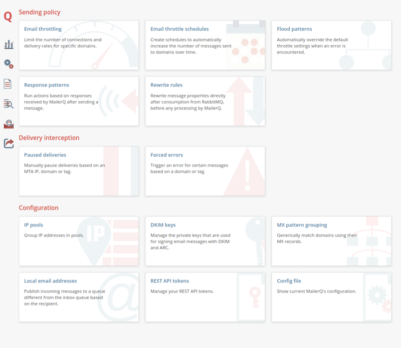 As a Mail Transfer Agent (MTA) the MailerQ platform has the following features: