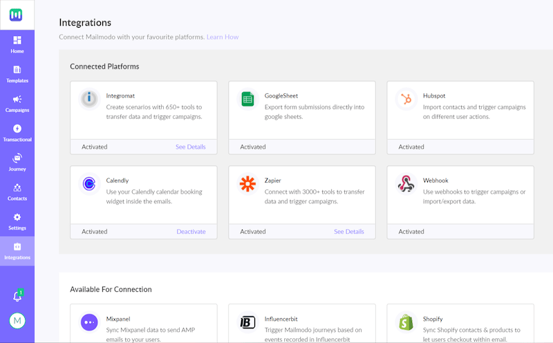 - Integrations with CRMs, Marketing Analytics, CDPs, eCommerce platforms and other tools