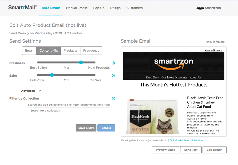 SmartrMail offers Automated Product Recommendation Emails, Quicker Email Newsletters, and Advanced Abandoned Cart Recovery. All emails can be personalized one to one messages, based on each customer’s past purchase history, browsing behaviour, and email clicks.