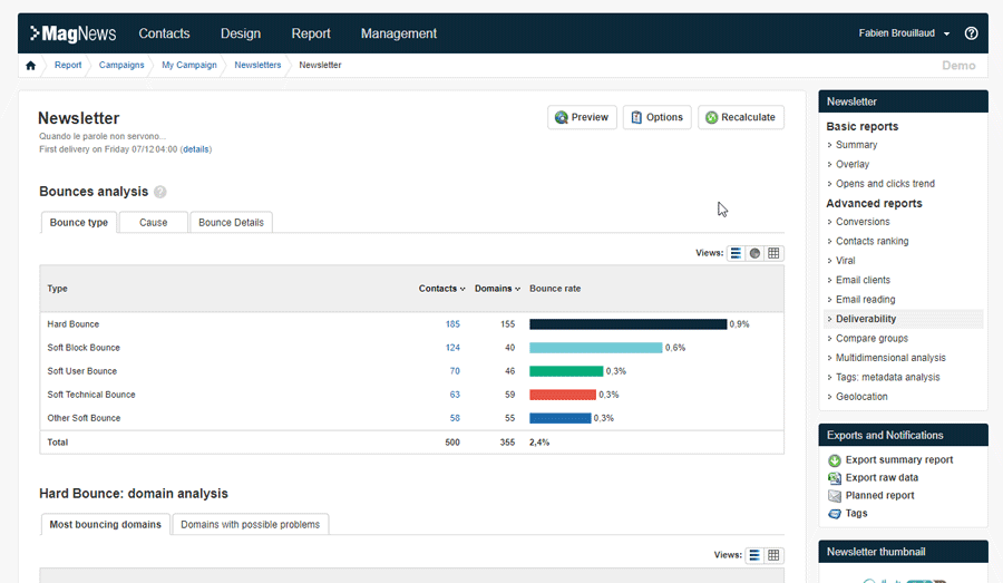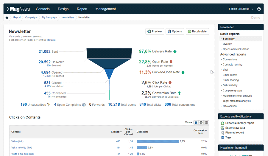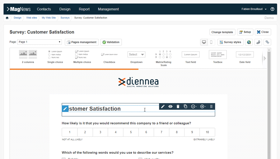 MagNews allows marketers to easily build and manage their email & mobile campaigns with a set of specific features: Advanced Database Segmentation, Drag & drop Editor, SMS Editor, Advanced Reports, Conversion tracking and Engagement Score, Survey tool, Spam & Errors check, Inbox Preview, Send time optimization, bounce management and more.