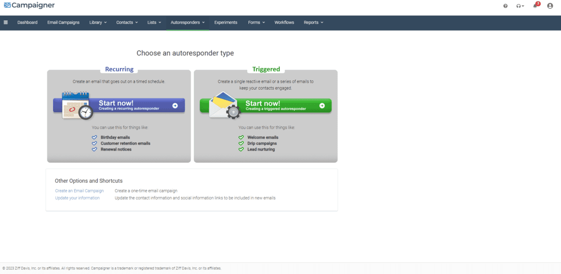 Campaigner was founded in 1999 and was acquired by J2 Global, now known as Ziff Davis in 2010.
