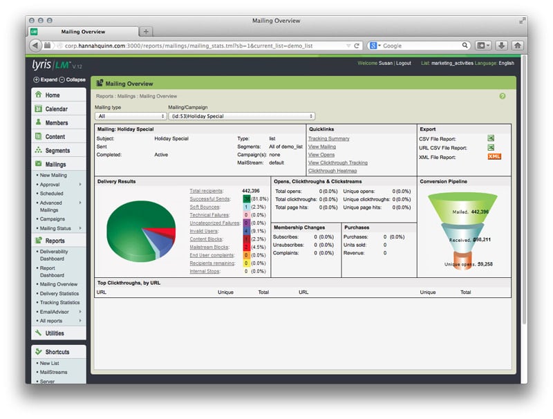 Aurea LM Professional provides marketers with advanced email list marketing capabilities, including: dynamic content, advanced scripting, SSL support, deliverability dashboard and MailStreams segmentation, multi-vendor Web analytics integration, a heat map that shows your most popular links, and click-through, clickstream, refer-a-friend, and forward tracking