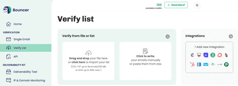 Integrations – Bouncer also provides smooth integrations with over 10 top marketing and cold mailing tools (like Moosend, Lemlist, Mailchimp), so you can verify your subscribers even quicker and smoother.