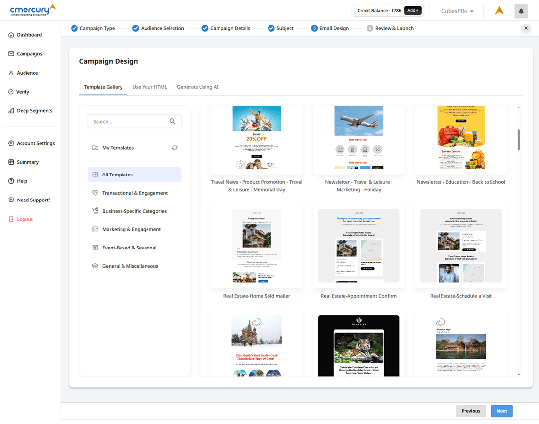 - AI-Powered Subject Lines – Generates subject lines tailored to campaign type, tone, and audience using contextual AI.