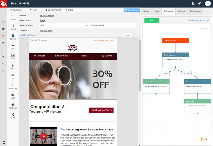 Follow-up manager: The follow-up manager allows you to create automated campaigns and lets you decide on what conditions your customers will receive your emails.