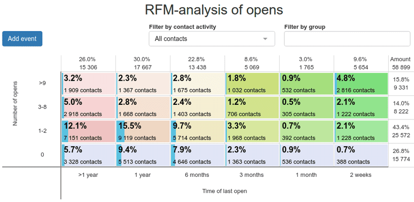 Segmentation: Targeting based on customers’ preferences and activities in emails, on the website, or offline.