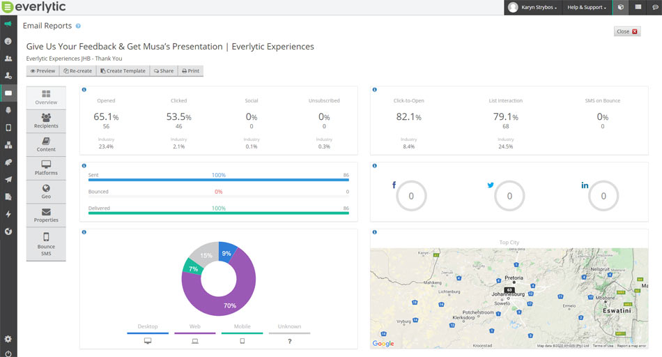 Everlytic is Cloud Marketing Software developed in South Africa. Every day hundreds of top South African and international companies use their software to send millions of messages to their customers and subscribers.