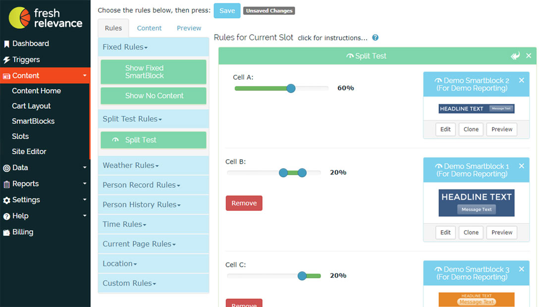 Customizes banners, promotions, coupons, call-to-actions, pop-ups, and more to each shopper across email, website and app, using real-time profiling and advanced segmentation.