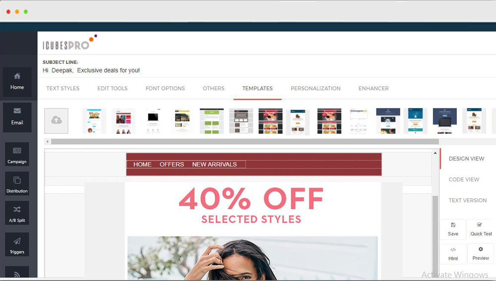 iCubesPro allows marketers to deliver personalized, one-on-one email campaigns. The automation and cross channel capablities helps the marketer to handle the customer life cycle journey from inception to engagement to retention through build-in forms, list growth notifications, web push subscriptions, exit notifications, email & sms marketing.