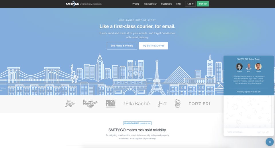 SMTP2GO is an international outgoing email service provider, with native-English speaking support located around the world (USA, UK, Spain, Australia and New Zealand).