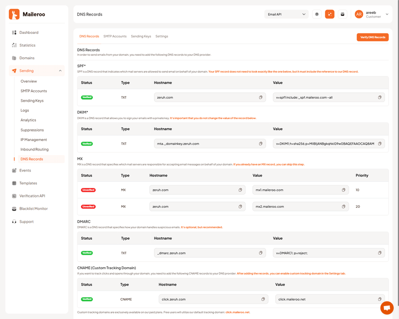 Maileroo is an email delivery provider, providing scalable delivery for both transactional and marketing emails. Designed for developers by developers, our SMTP / HTTP API makes it easy for your platform or application to send emails without all the complications. Maileroo includes tools for DNS diagnosis, suppression handling, blacklist monitoring, and isolated metrics per domain.
