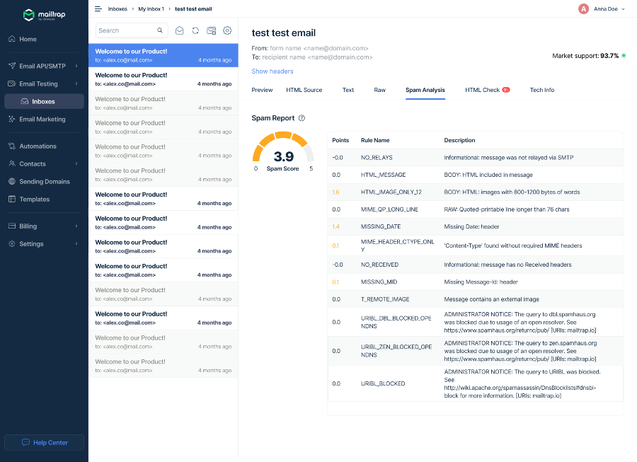 Email Sandbox – a safe environment to inspect and debug emails in staging, dev, and QA environments. Preview and analyze content for spam and validate HTML/CSS before sending emails to recipients in production.