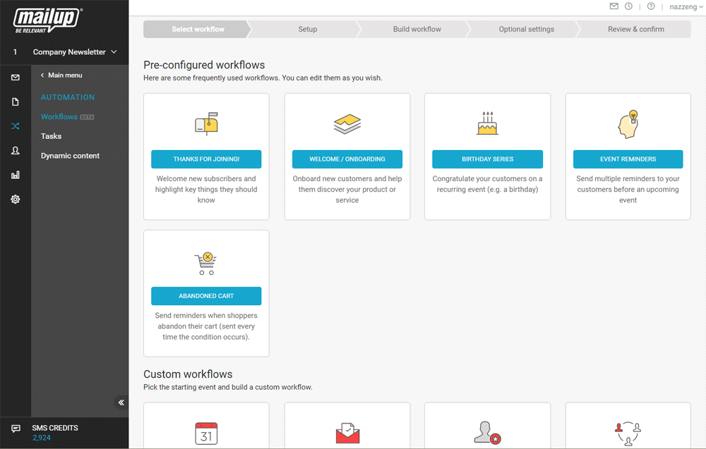 Marketing automation tools: MailUp provides advanced features to send personalized campaigns automatically: MailUp workflows allow companies to set up an automated and personalized email series based on the recipients’ activities, with simple drag & drop operations.