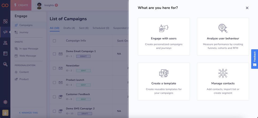 Inboxing is just a start. Keep your customers engaged with reliable email marketing tools. Netcore provides deliverability consulting (CRED), automated email campaigns with split journeys, and a 360-degree understanding of customers and targeted communication through customer journey mapping.