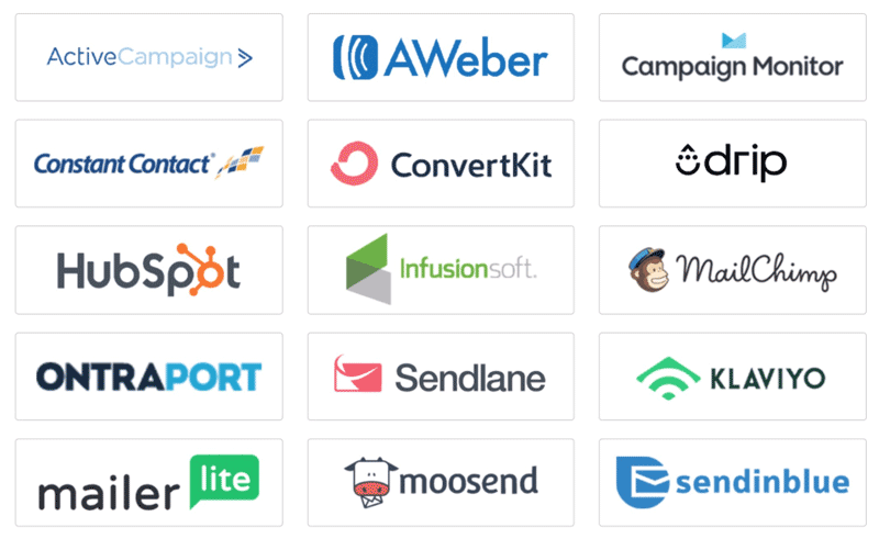 - Tight integration with leading email service providers including MailChimp, Infusionsoft keap, HubSpot, Ontraport, Sendinblue, ActiveCampaign, ConvertKit, and more